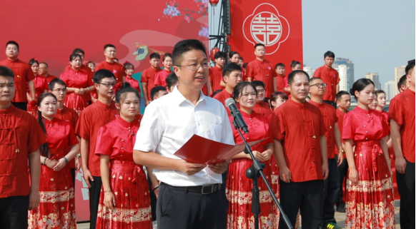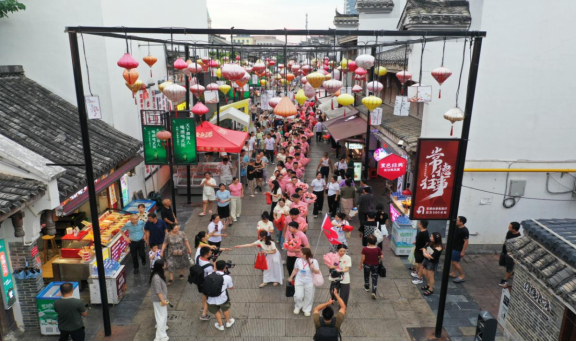 2025年传统“七夕”节,来自湖南省各市州的77对新人来到常德市河街,参加湖南省第十届国潮集体婚礼,在现场300多名嘉宾及亲友的见证下,以简约适度、绿色低碳集体婚礼的形式,许下“执子之手·与子偕老”爱的誓言,在收获不一样的“常德式浪漫”同时,传承中华优秀婚俗文化与优良家风。